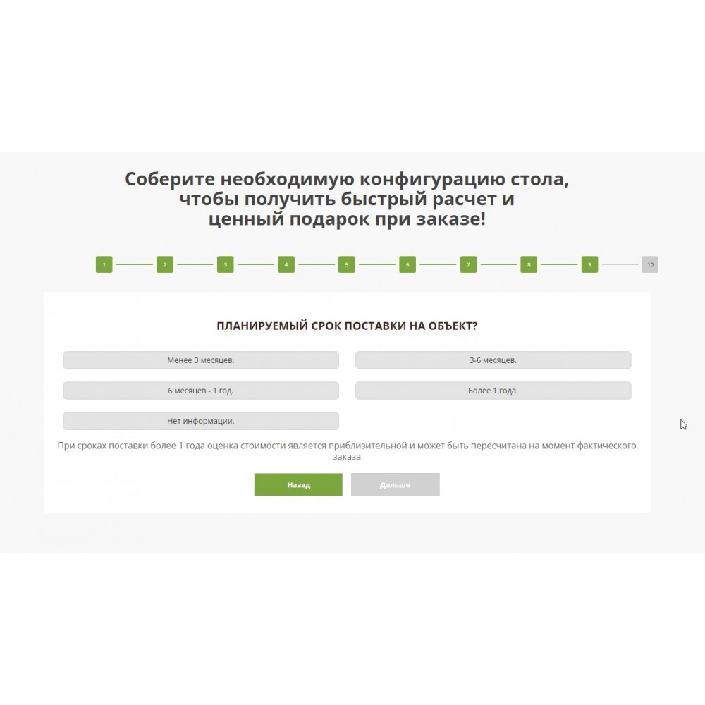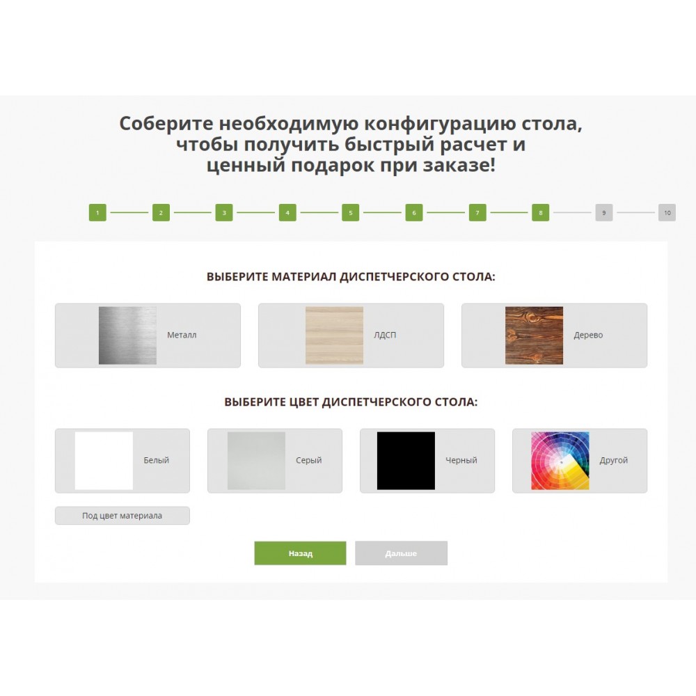 Квиз-опросник, который позволяет клиенту быстро и просто выразить свои пожелания при заказе диспетчерской мебели.