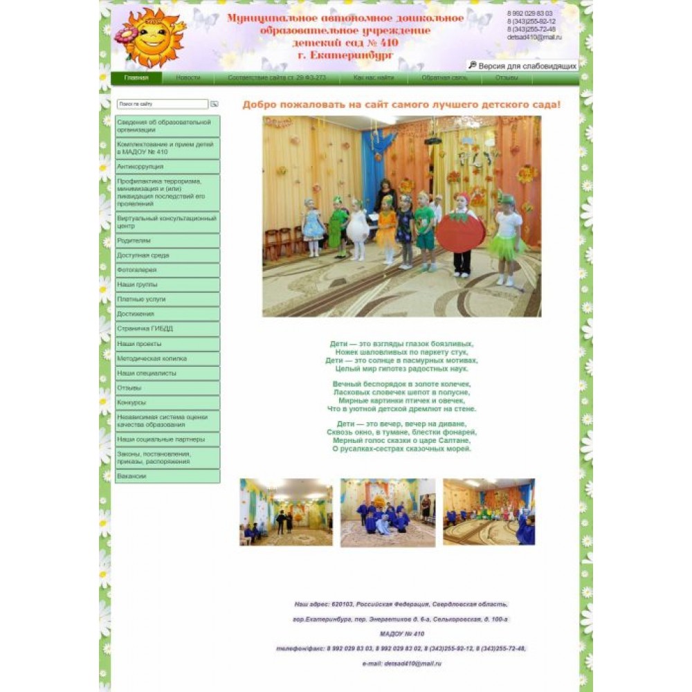 Не дорогой сайт муниципального детского сада от веб-студии Максвебсайт г. Серов