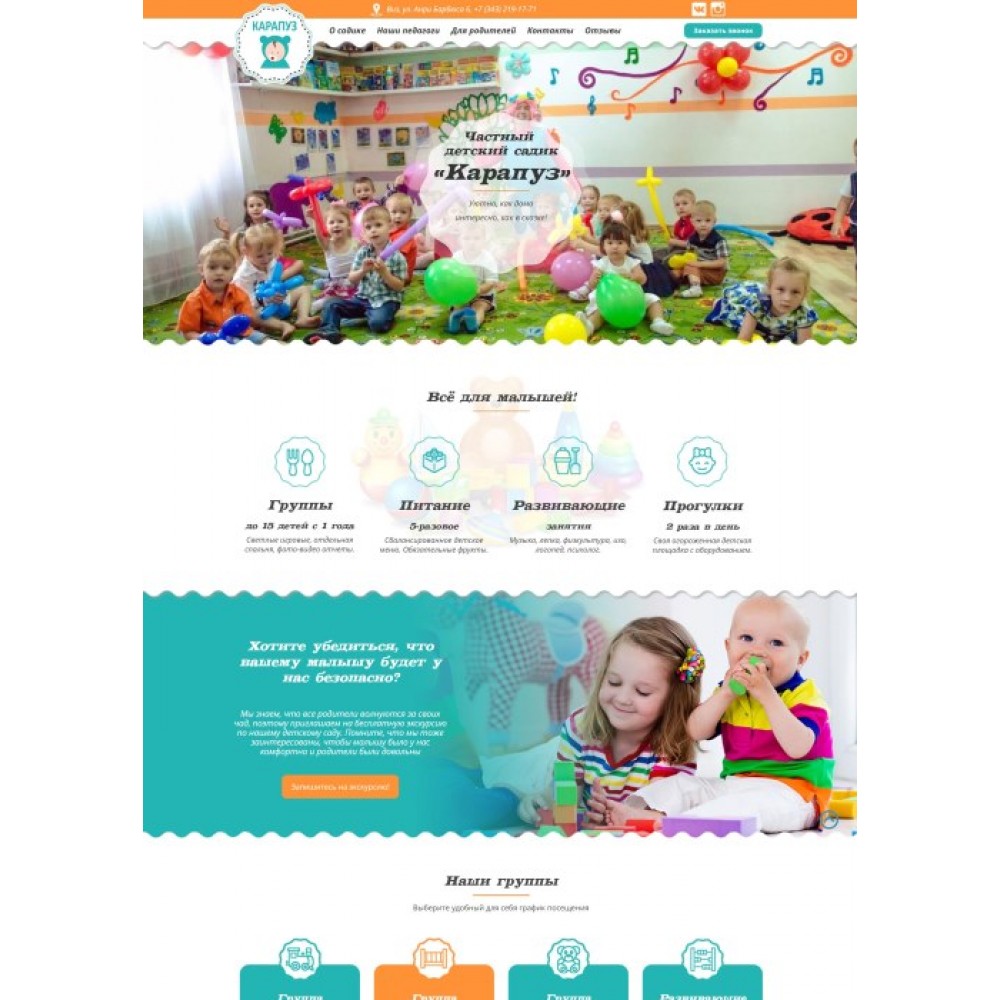 Рекламный сайт частного детского сада Карапуз от веб-студии Максвебсайт г. Серов