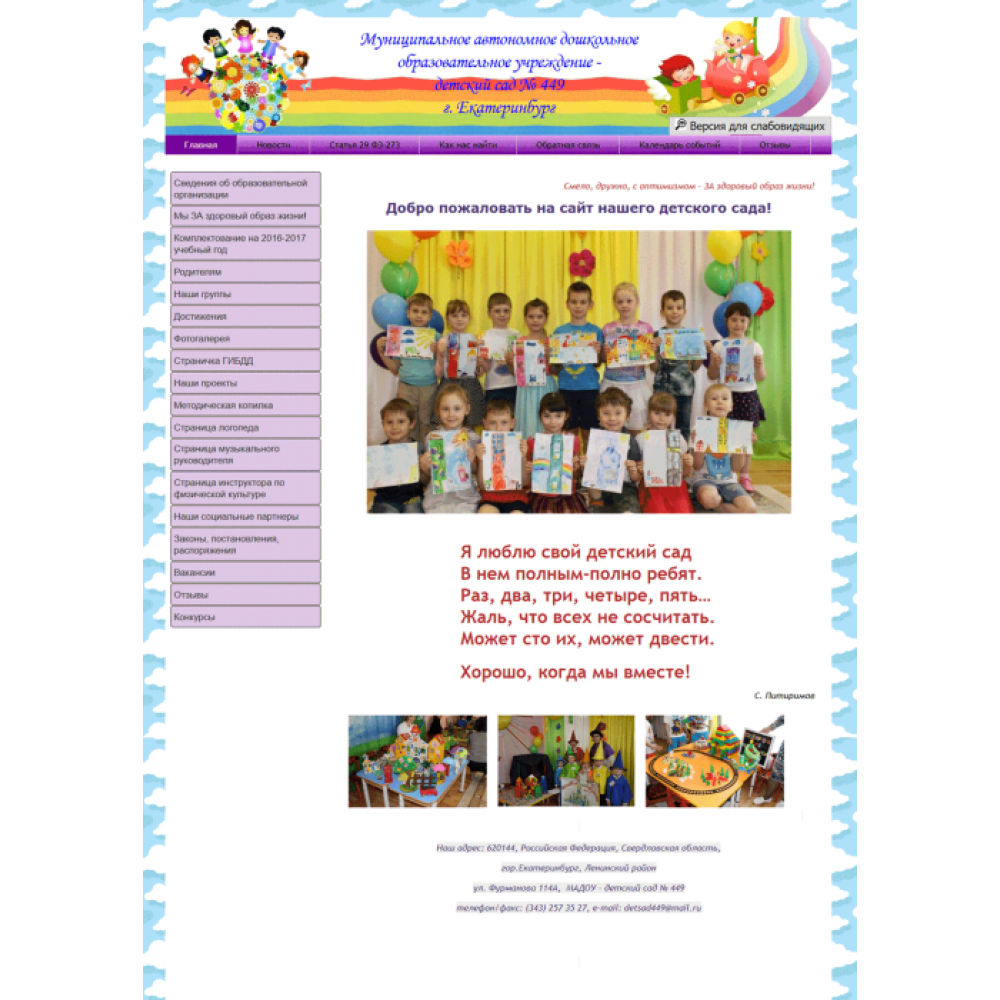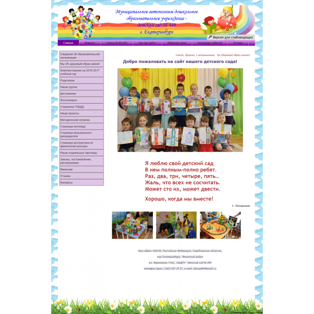 Сайт муниципального детского сада г.Екатеринбург от веб-студии Максвебсайт г. Серов
