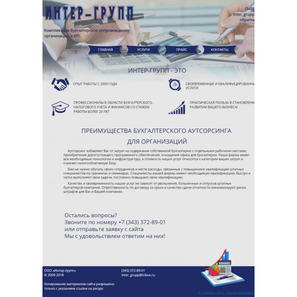 Сайт-визитка бухгалтерской компании г.Екатеринбург от веб-студии Максвебсайт г. Серов